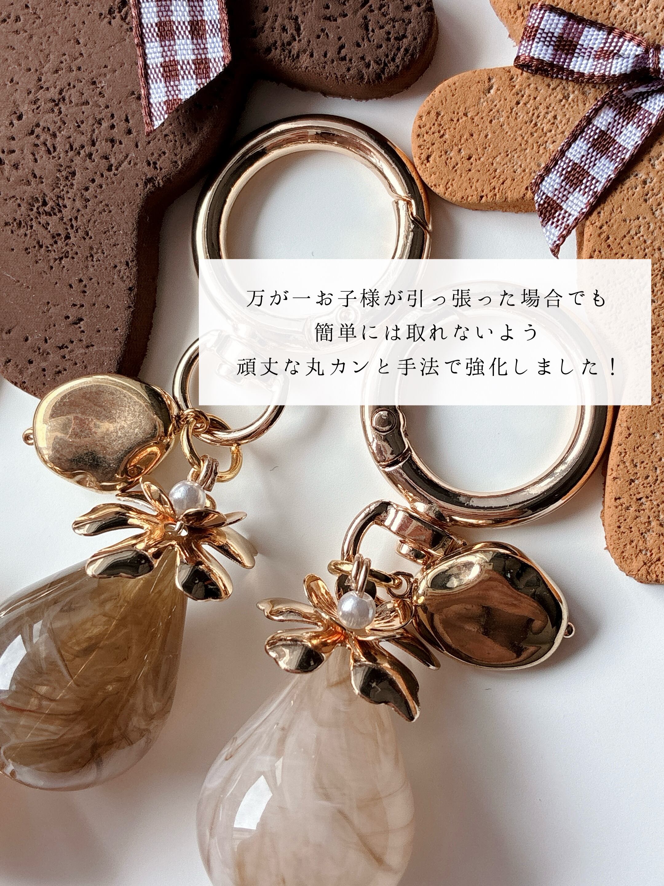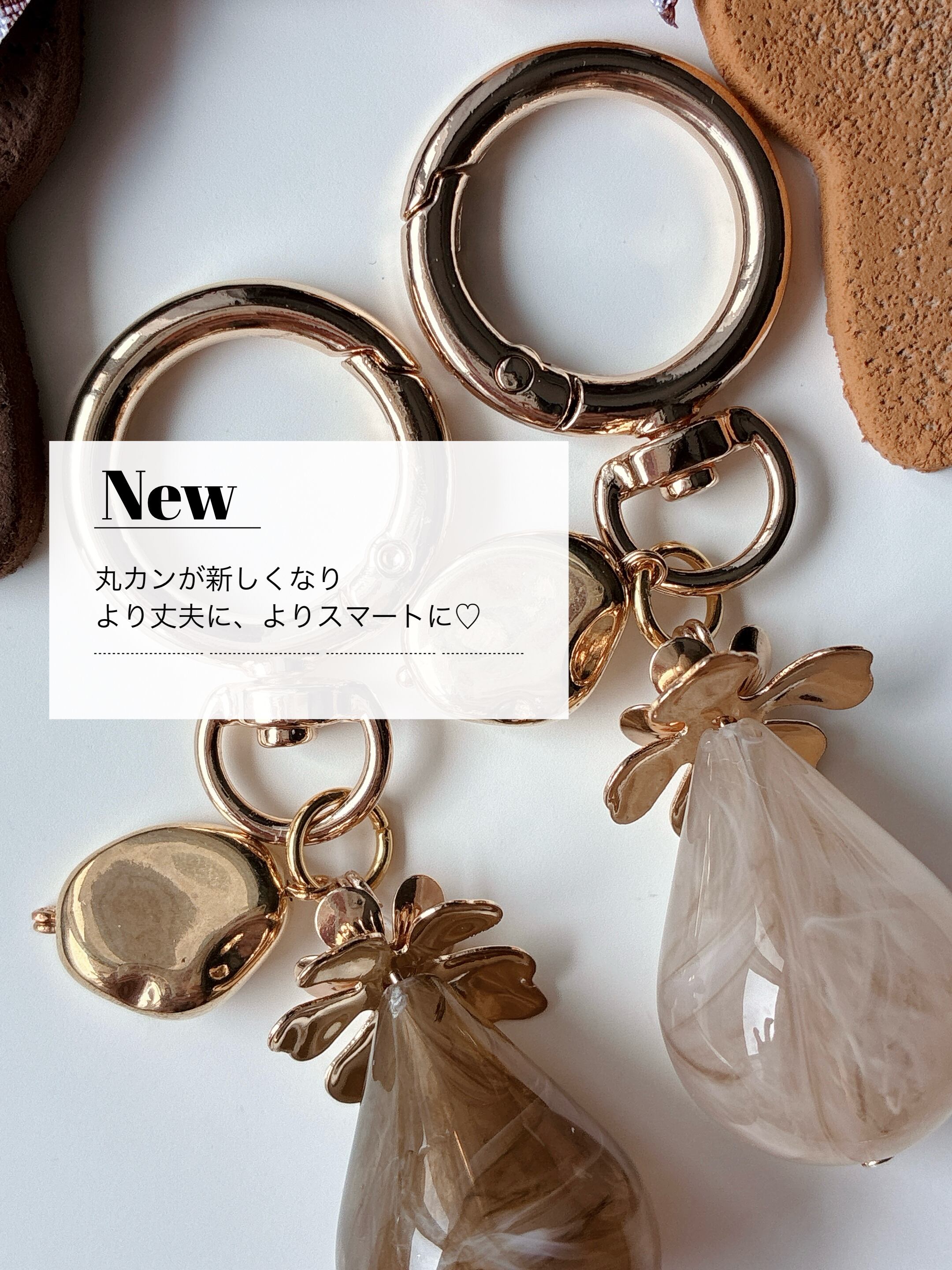 バッグや鍵などにもつけやすく
